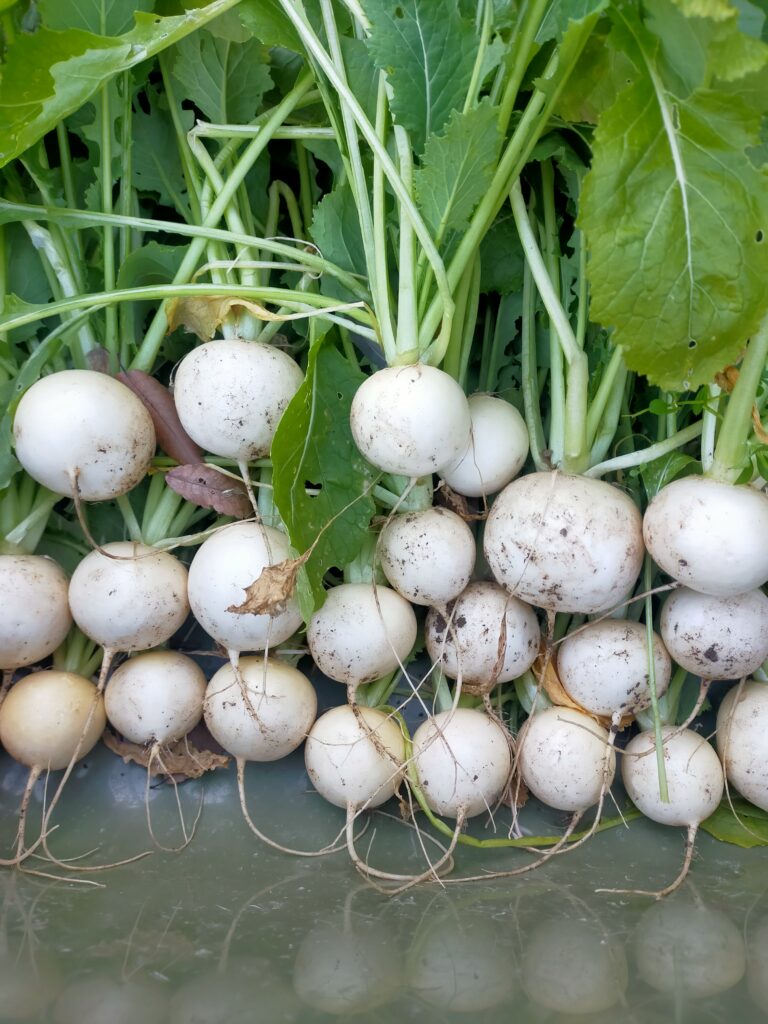 寒い冬でもサラダカブはまだまだ生長中
