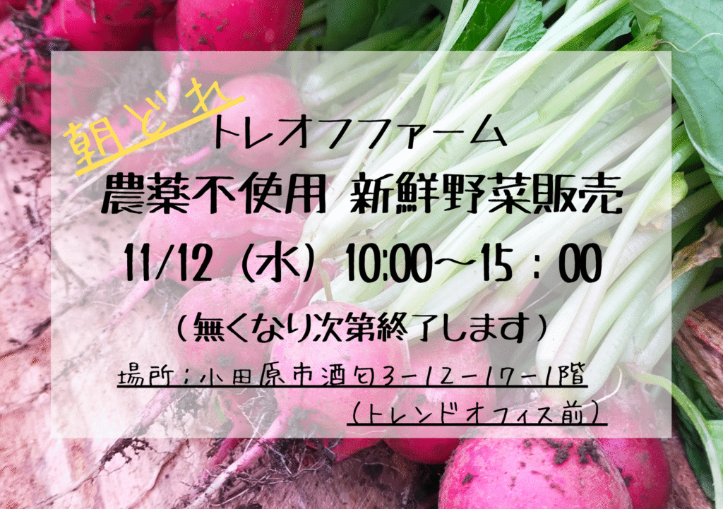 この時期に収穫される、旬な新鮮野菜の販売を予定しております!