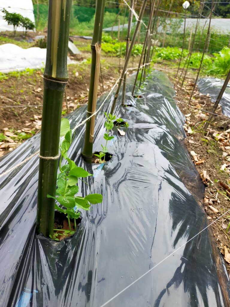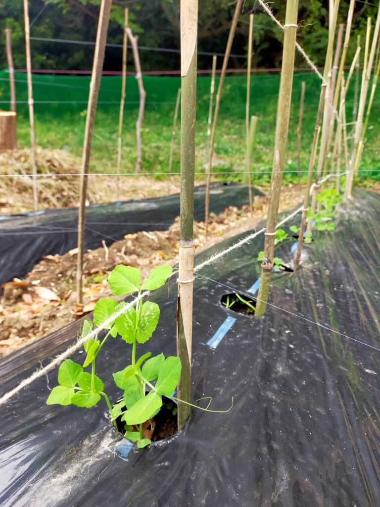 竹の支柱に麻ひもを施し、誘引作業も行いました!