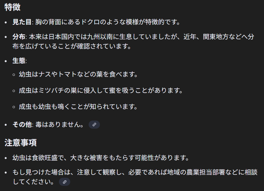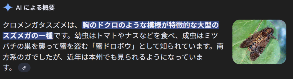 この幼虫は食欲旺盛で、ナスやトマトなどの葉を食べてしまうとありました。