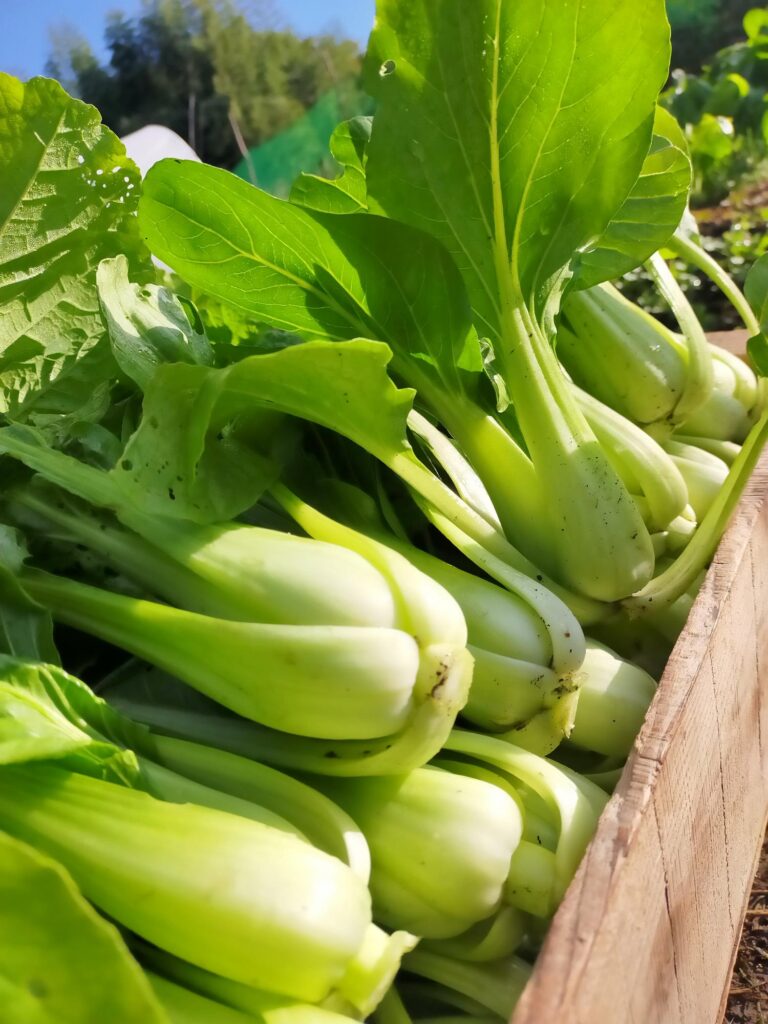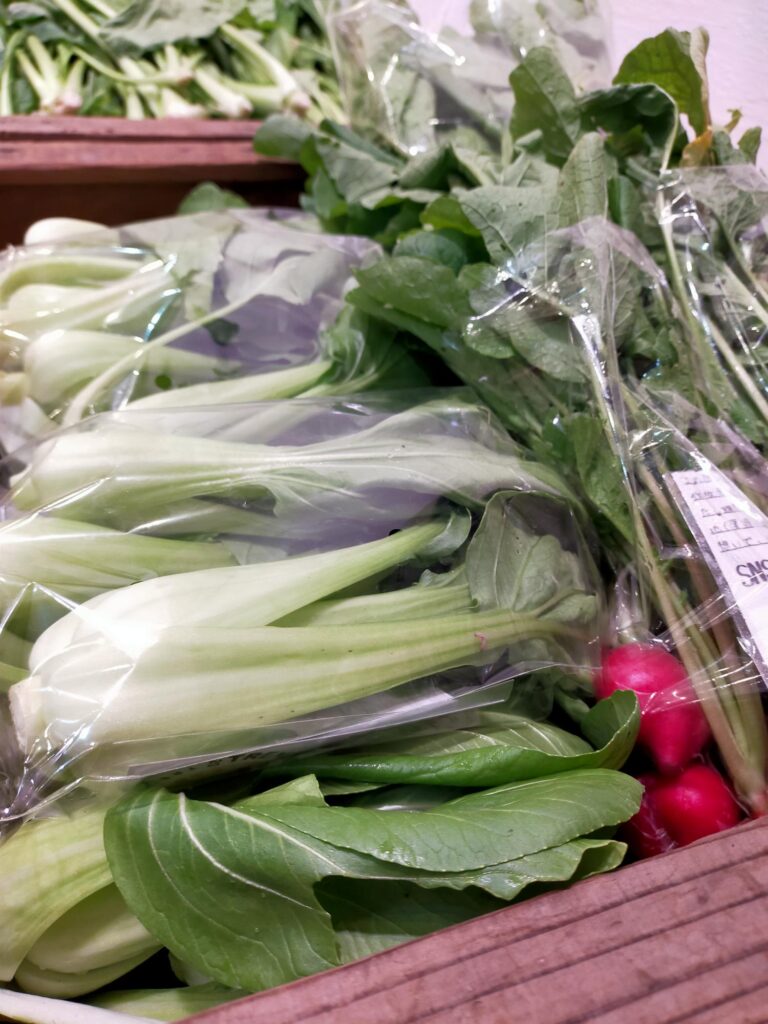 小松菜、青梗菜、ラディッシュ(はつか大根)、高菜、それとみかん(青島、早生)。