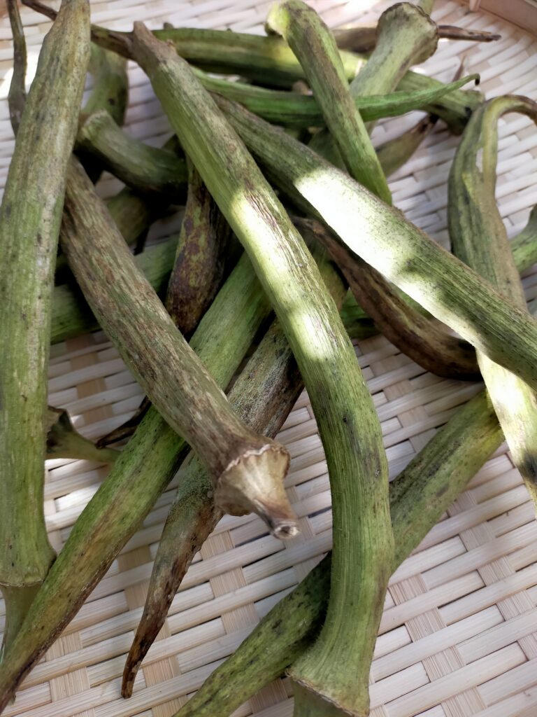 昨年夏に農薬不使用で栽培したオクラから採種した