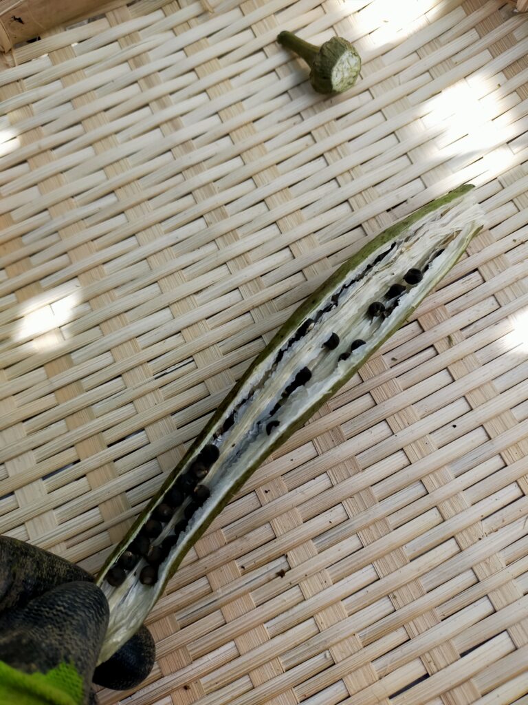 オクラから自家採種を行いました。